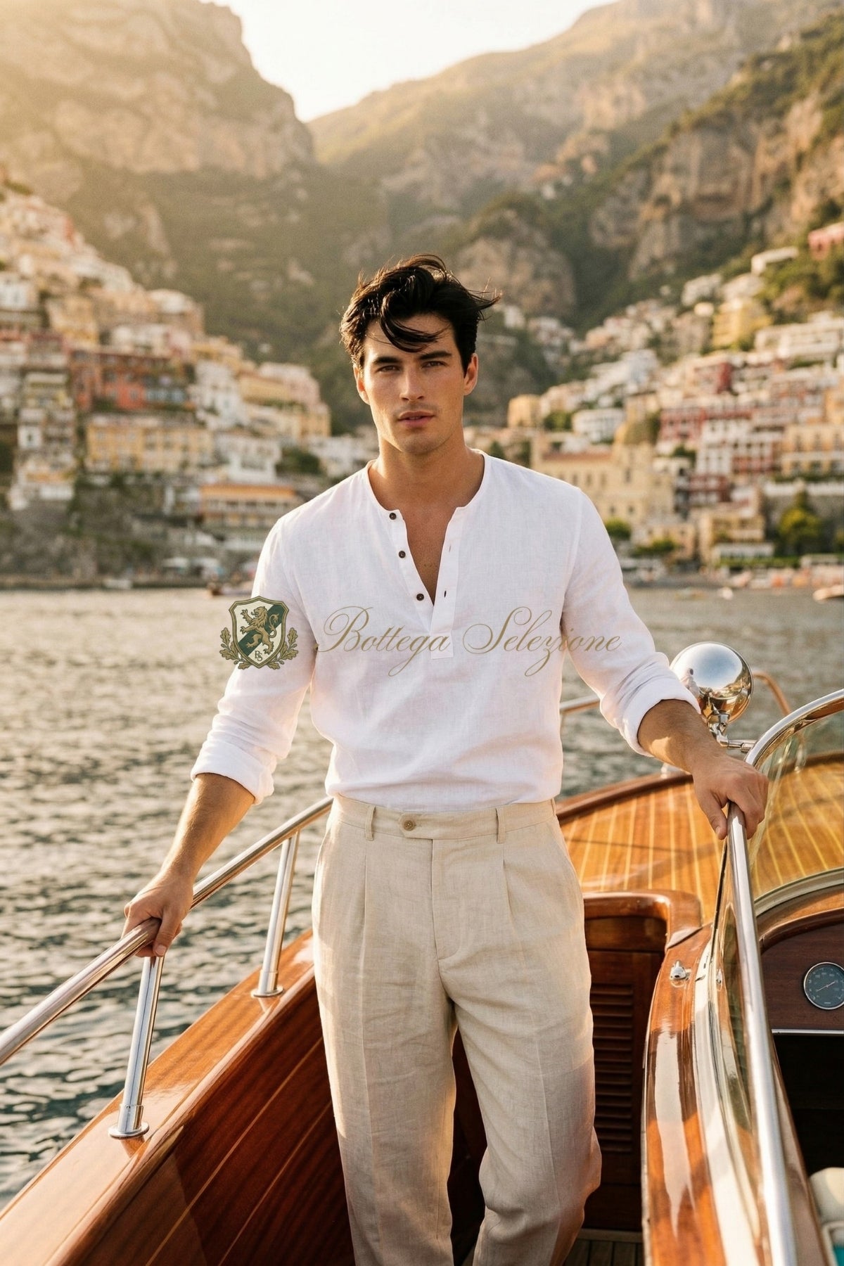 Warm-weather essentials in cotton, linen and premium hides. The Spring/Summer 2026 collection captures the unhurried elegance of the Amalfi Coast — lightweight knits, tailored trousers, and leather pieces built to develop character over time.